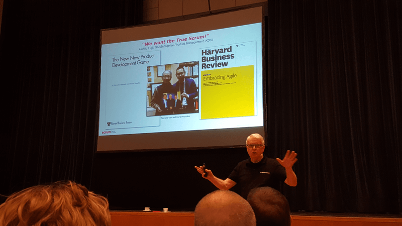 Der zweite Tag des Scrum Day 2017 in Stuttgart begann mit einer Keynote von Jeff Sutherland, dem Co-Erfinder von Scrum (Ken Schwaber ist der andere).