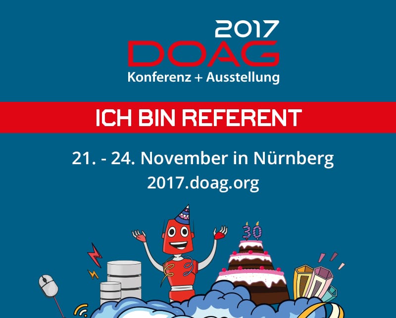 Vom 21. bis zum 24. November 2017 findet zum 30. Mal die DOAG Konferenz + Ausstellung in Nürnberg statt. Drei Tage lang Vorträge mit internationalen Rednern, Workshops, Praxis – ich freue mich schon darauf. DOAG steht für „Deutsche ORACLE-Anwendergruppe“ und wird vom gleichnamigen eingetragenen Verein organisiert.Dort kommen – wie der Name schon sagt – Anwender von Oracle-Produkten zusammen, das sind relationale Datenbanksysteme und Enterprise Software. Ich werde dort auch einen Vortrag halten in der Kategorie „Strategie und Business Practices“, und zwar zu einem meiner Lieblingsthemen: „Fahren Sie Ihre Projekte agil, klassisch oder hybrid?“